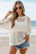Sale White Hollow Out Knit Bracelet Sleeve Drop Shoulder Sweater