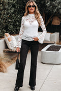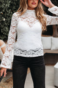 Sale White Lace Crochet Bell Sleeve Mock Neck Blouse
