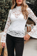 - Elegant lace crochet design for a touch of sophistication.Bell sleeves add a trendy and stylish flair to your look.Mock neck offers a chic and modern silhouette.Versatile blouse that can be dressed up with various bottoms.