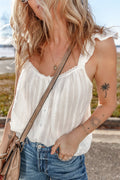 White Lace Crochet Ruffled Buttoned Loose Fit Tank Top