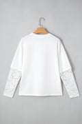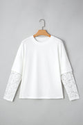 White Lace Long Sleeve Insert Drop Shoulder Tee
