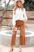 Fiery Red Frilled Trim Button Up Pleated Long Sleeve Shirt