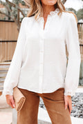 White Lace Patchwork Buttoned Stand Neck Loose Shirt