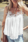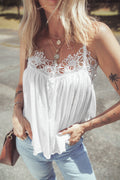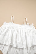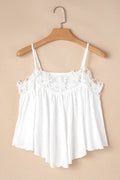 White Lace Splicing Spaghetti Straps Ruffle Flared Tank Top