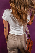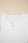 Sale White Lace V Neckline Ribbed Slim Fit T Shirt