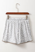 White Leopard Elastic Waist Lace up Contrast Trim Casual Shorts
