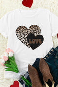 White Leopard LOVE Double Heart Printed Valentines Graphic Tee