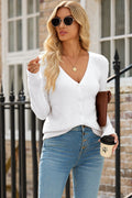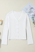 White Lightweight Ribbed Knit Button Front V Neck Cardigan