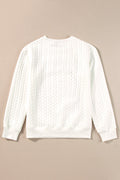 White LUCKY Chenille Embroidered Cable Knit Pullover Sweatshirt