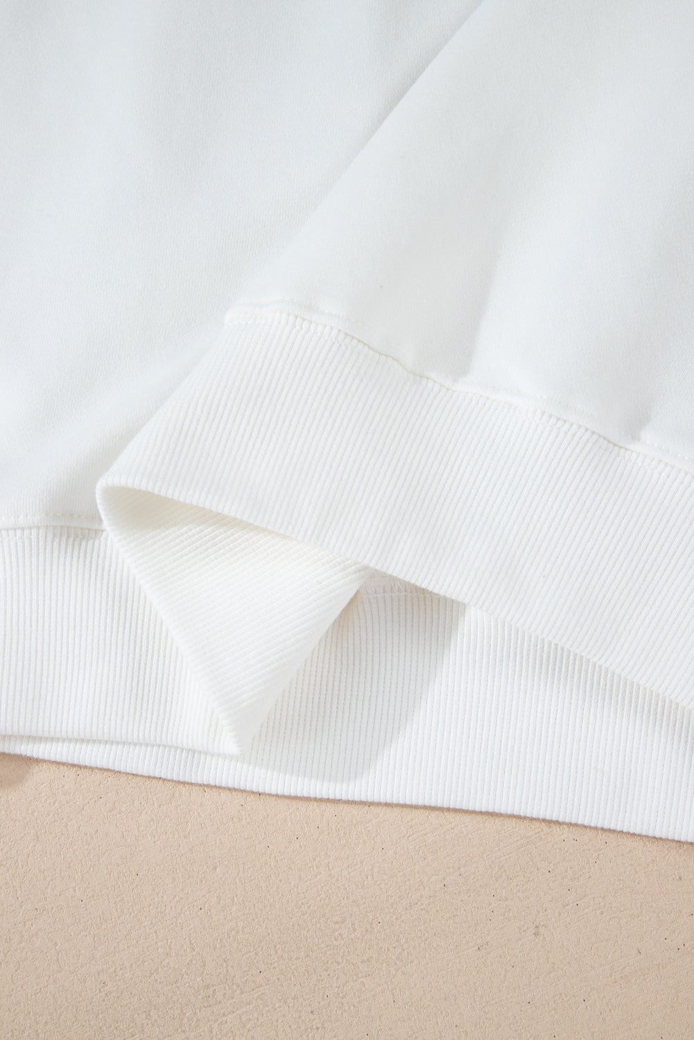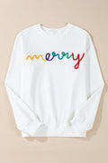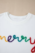 White MERRY CHRISTMAS Multicolor Embroidered Sherpa Pullover Sweatshirt