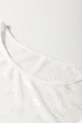 White Leopard Bow Décor Christmas Tree Graphic Crew Neck Tee