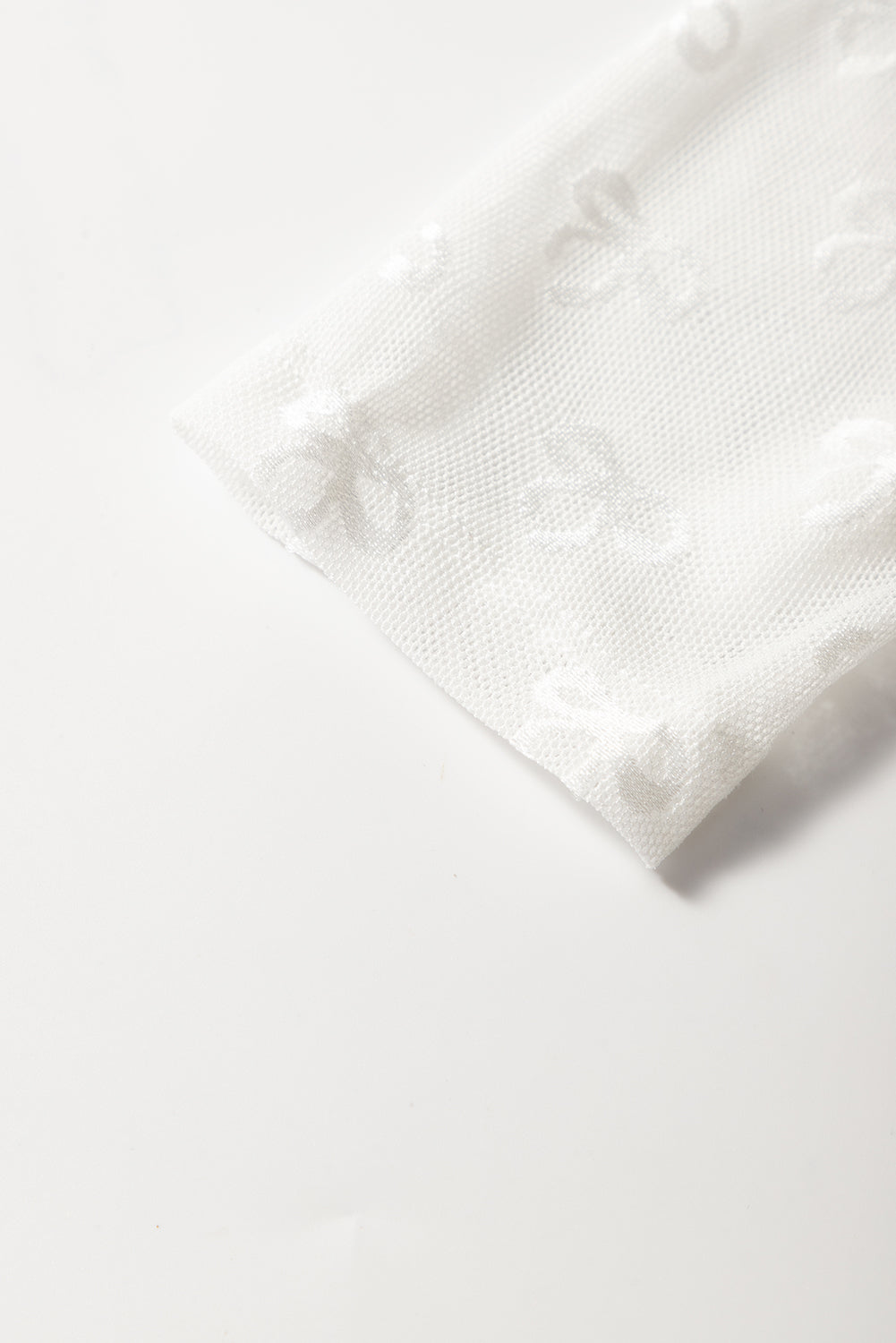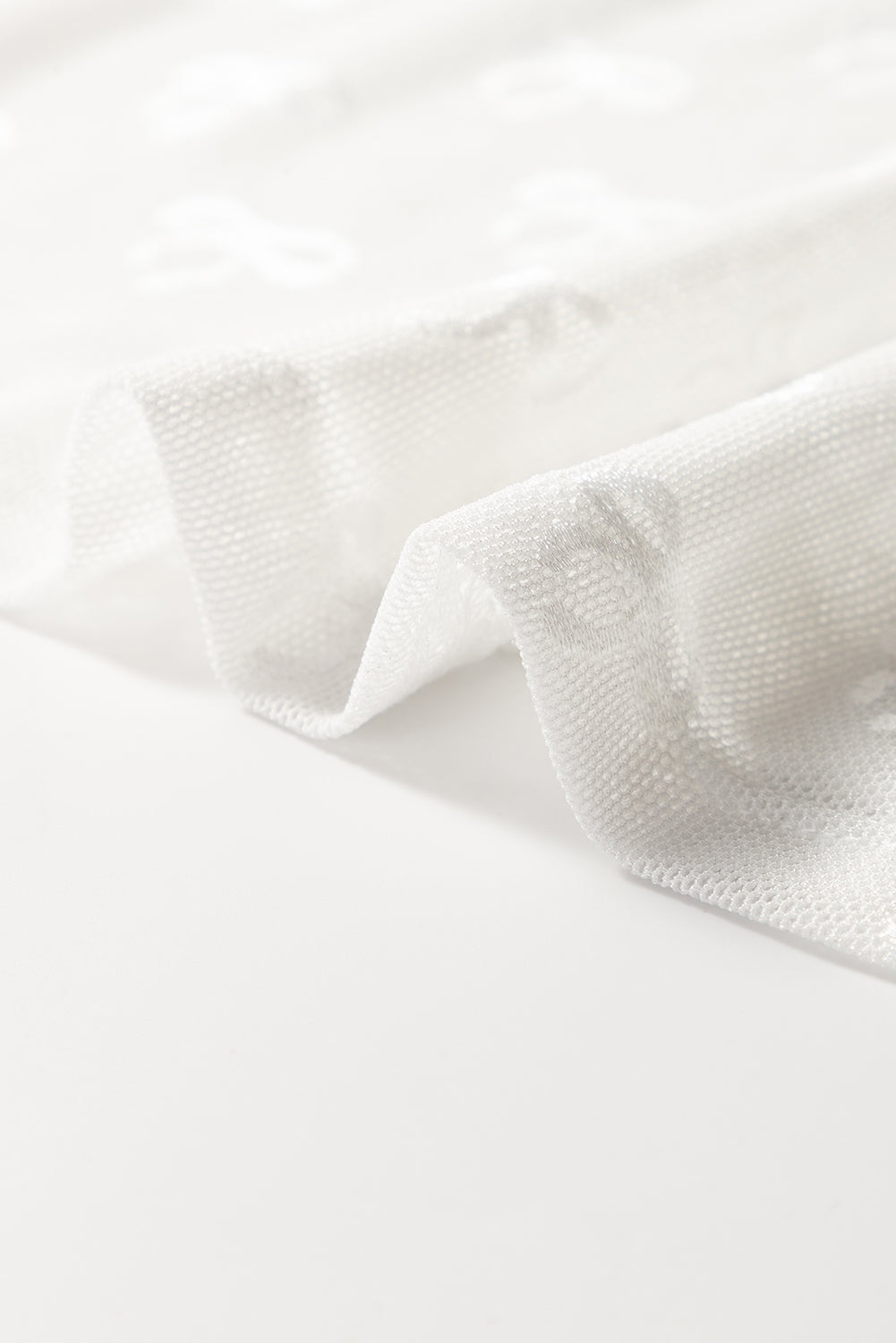 Sale White Mesh Bow Pattern Long Sleeve Top