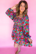 - Vibrant floral print makes this plus dress more feminine and charming