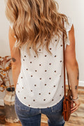 White Polka Dot Print Ruffled Shoulder V Neck Tank Top