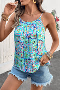 White Rhinestone Boho Floral Printed Spaghetti Strap Tank Top