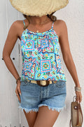 Sale White Rhinestone Boho Floral Printed Spaghetti Strap Tank Top