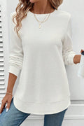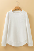 Sale White Rounded Hem Waffle Long Sleeve Top