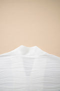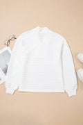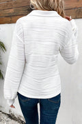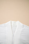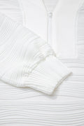 White Solid Color Textured Zip V Neck Pullover Sweatshirt