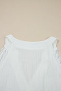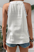 White Textured Lace Trim Pure Cotton Sleeveless Top