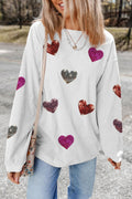 Pink Shiny Heart Shape love Print Sequined Sleeve Sweatshirt