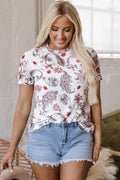 White Leopard Bow Décor Christmas Tree Graphic Crew Neck Tee