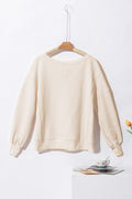 Sale White Waffle knit Bishop Sleeve Split Oversized Top
