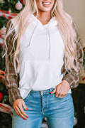White Waffle Patch Plaid Sleeve Kangaroo Pocket Hoodie