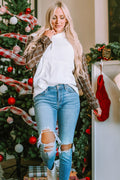 White Leopard Bow Décor Christmas Tree Graphic Crew Neck Tee