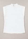 White Wavy Textured Mock Neck Cap Sleeve Top
