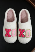 White XO XO Glitter Trim Letter Patched Plush House Slippers