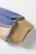 Wild Wind Color Block Mix Texture Waffle Patchwork Oversize Sweatshirt