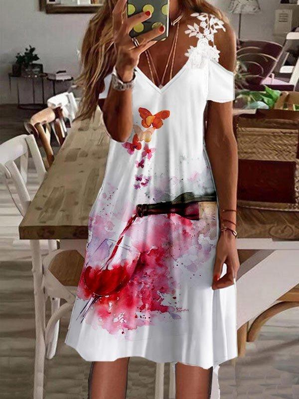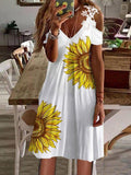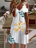 Sale V Neck Short Sleeves Print Casual Midi Dress
