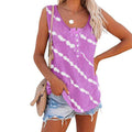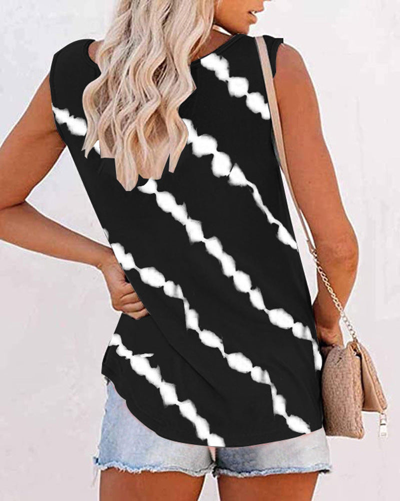 Women??s Summer Printed Diagonal Stripe Tank Top with Round Neck and Button Detail