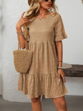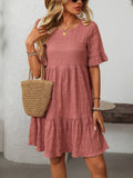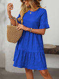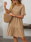 Square Neck Ruffle Detail Knee-Length Casual Short Sleeve Flowy Dress
