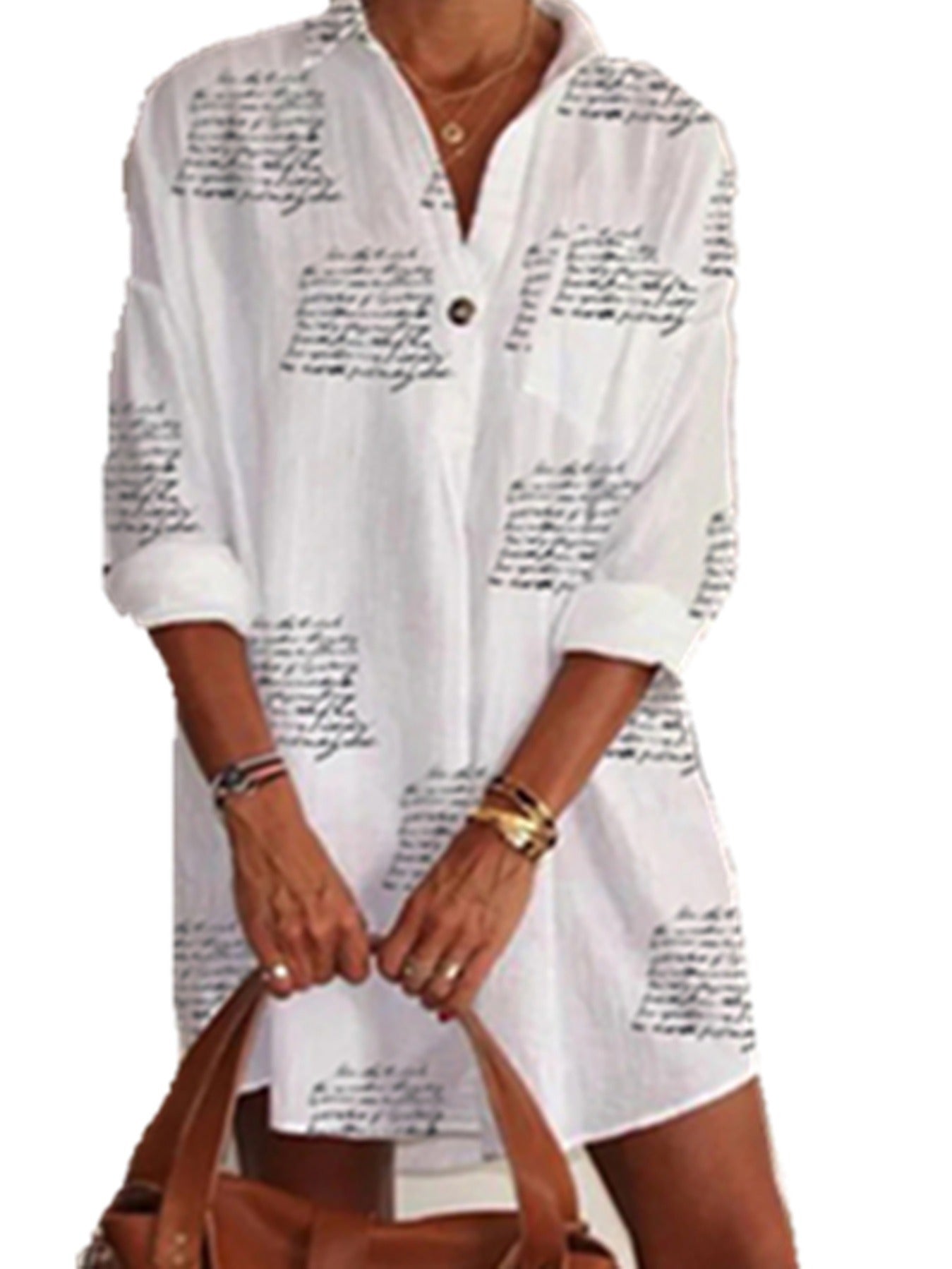 Women's Blouses Bohemian Knee Length Linen Blouses Loose Neck Button Pocket Casual V Neck Blouses