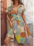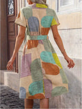 Sale V Neck Short Sleeves Print Casual Midi Dress