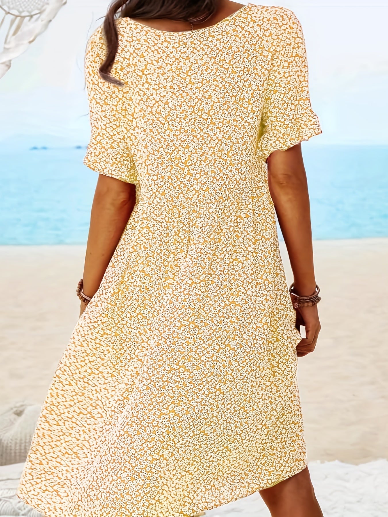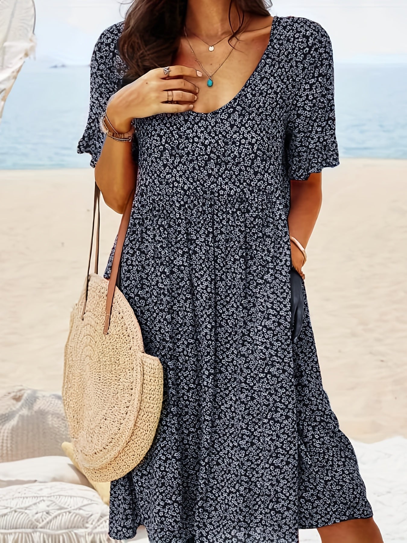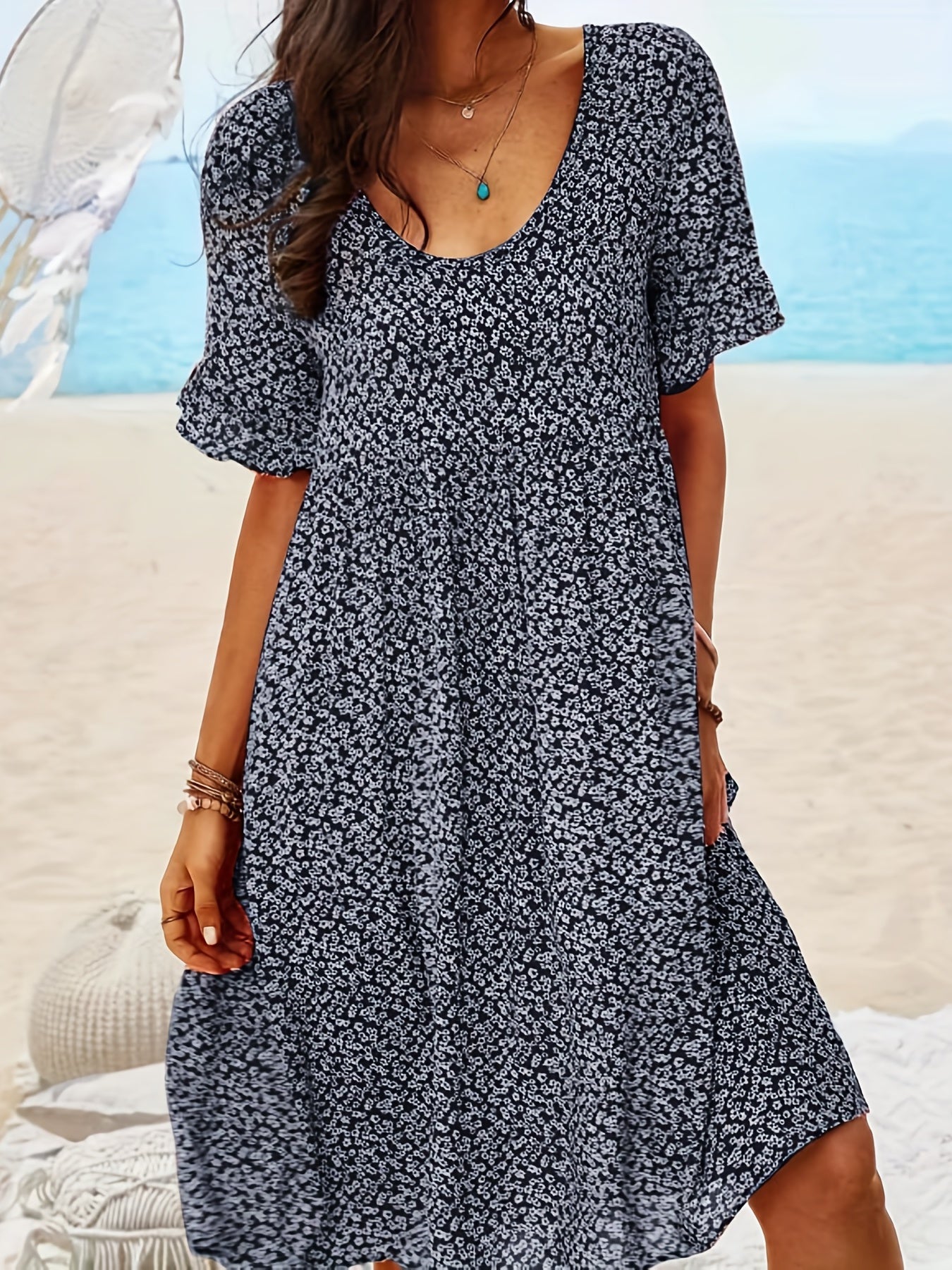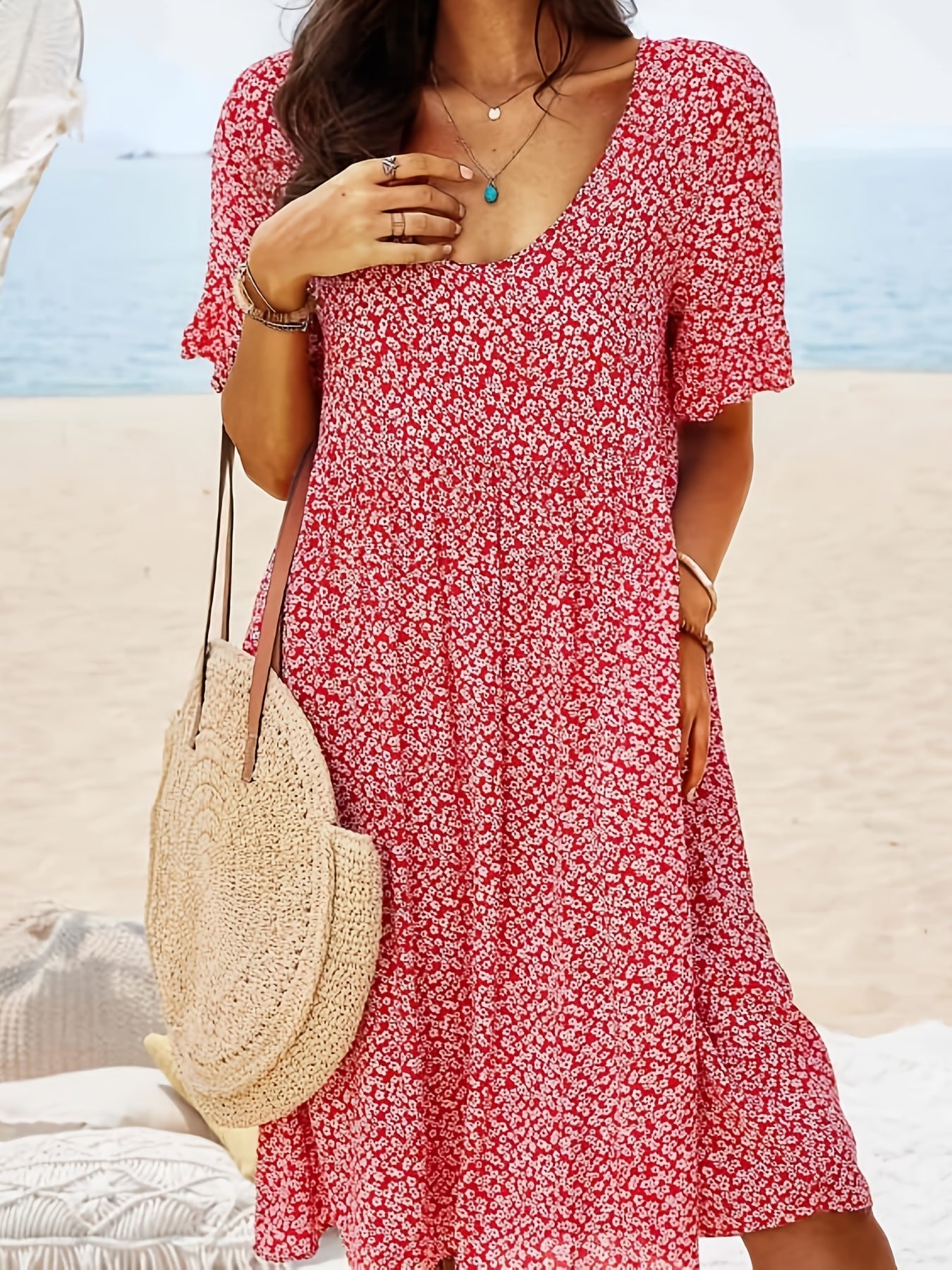 Women's Boho Floral Print Dress - Perfect for Beach Vacations and Casual Wear