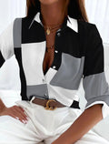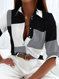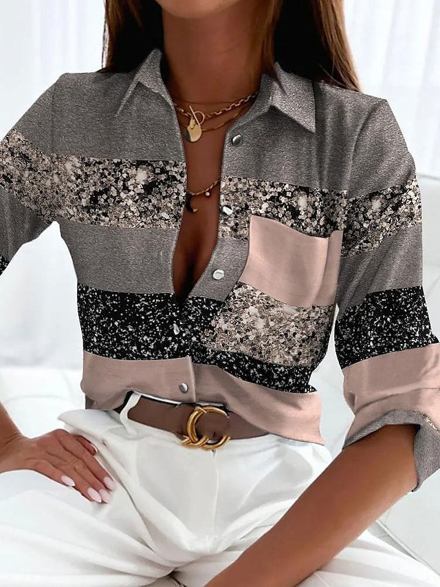 Women's Button Print Long Sleeve Casual Basic Shirt Collar Shirt Blouse