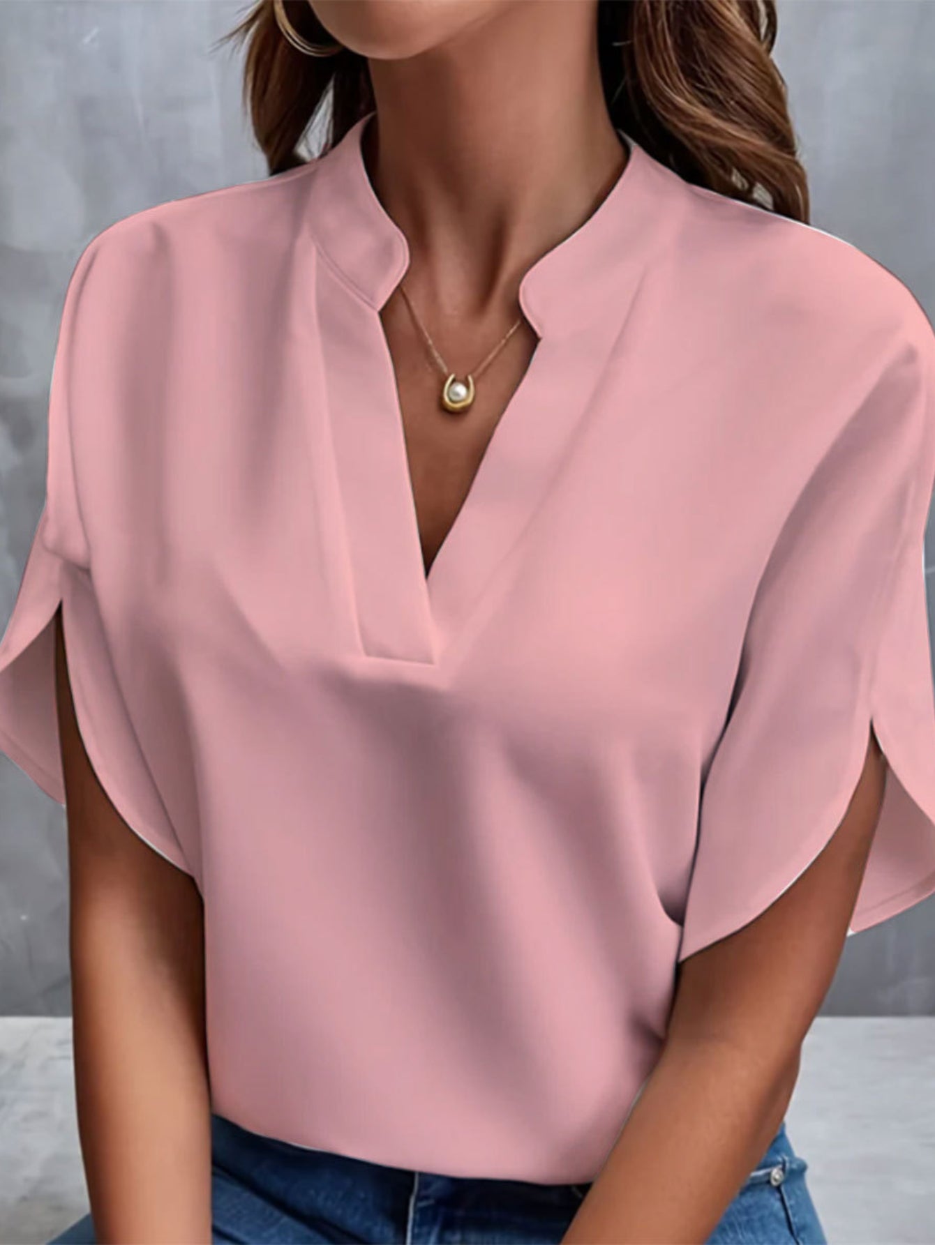Women's Casual Notch Neck Blouse with Split Sleeves