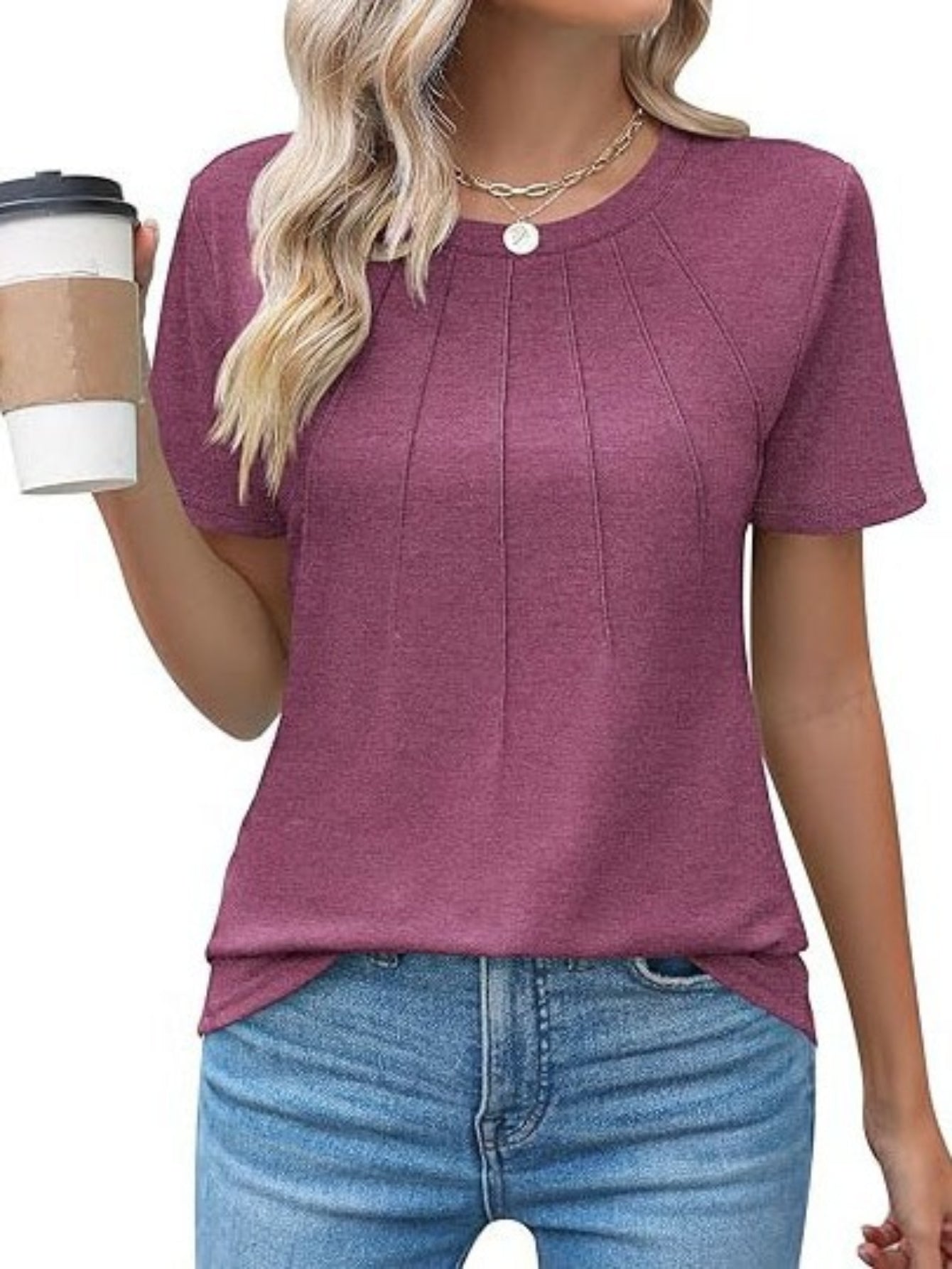 Women's Casual Short Sleeve T-Shirt - Solid Color Crew Neck Tee