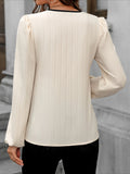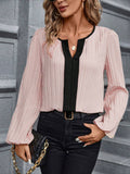 Women's Casual Spring & Fall Lantern Sleeve Blouse with Contrast Trim Notched Neck, Perfect for Everyday Wear
