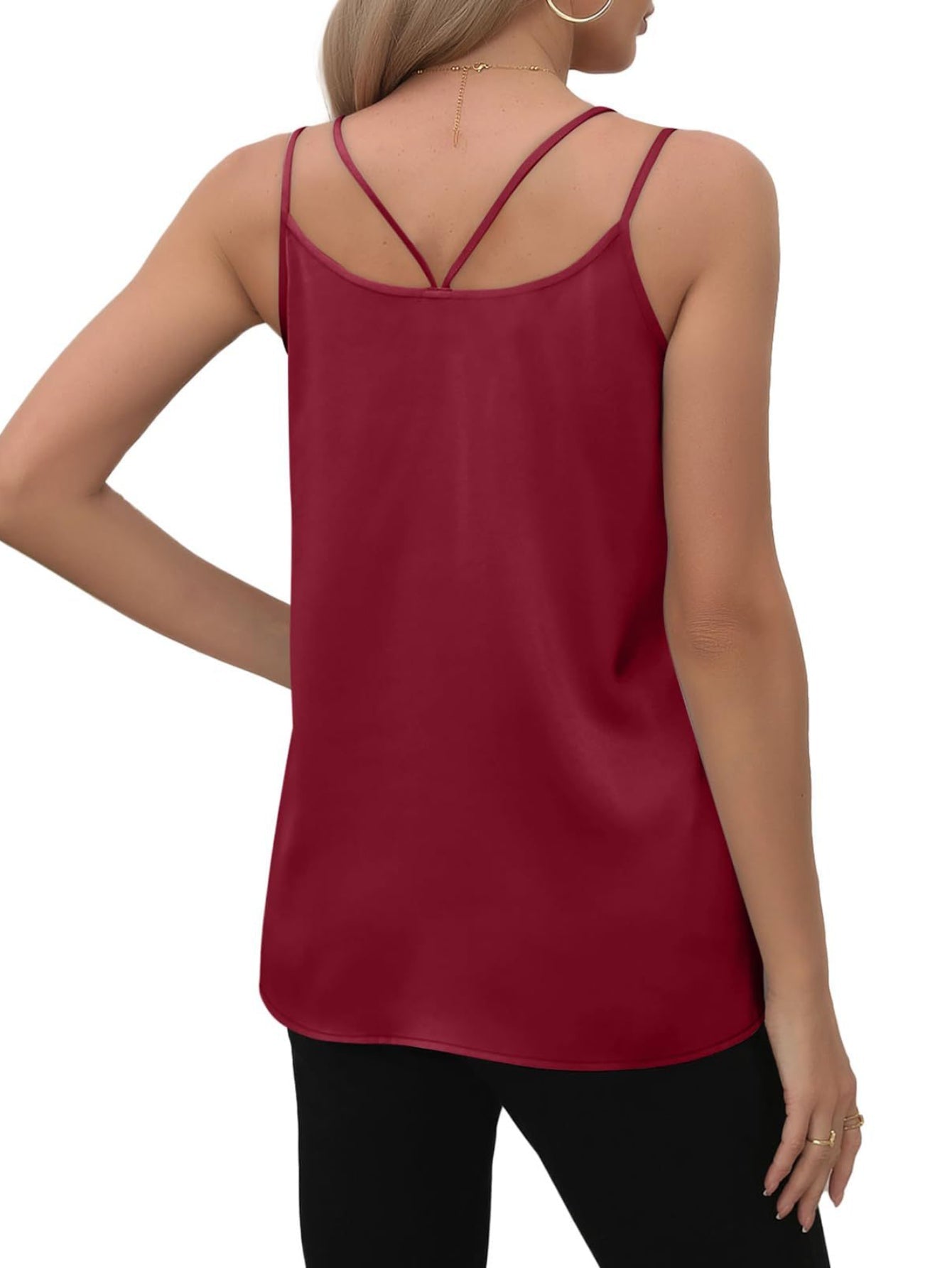 Sale Women's Plain Contrast Mesh V Neck Semi Sheer Cami Top