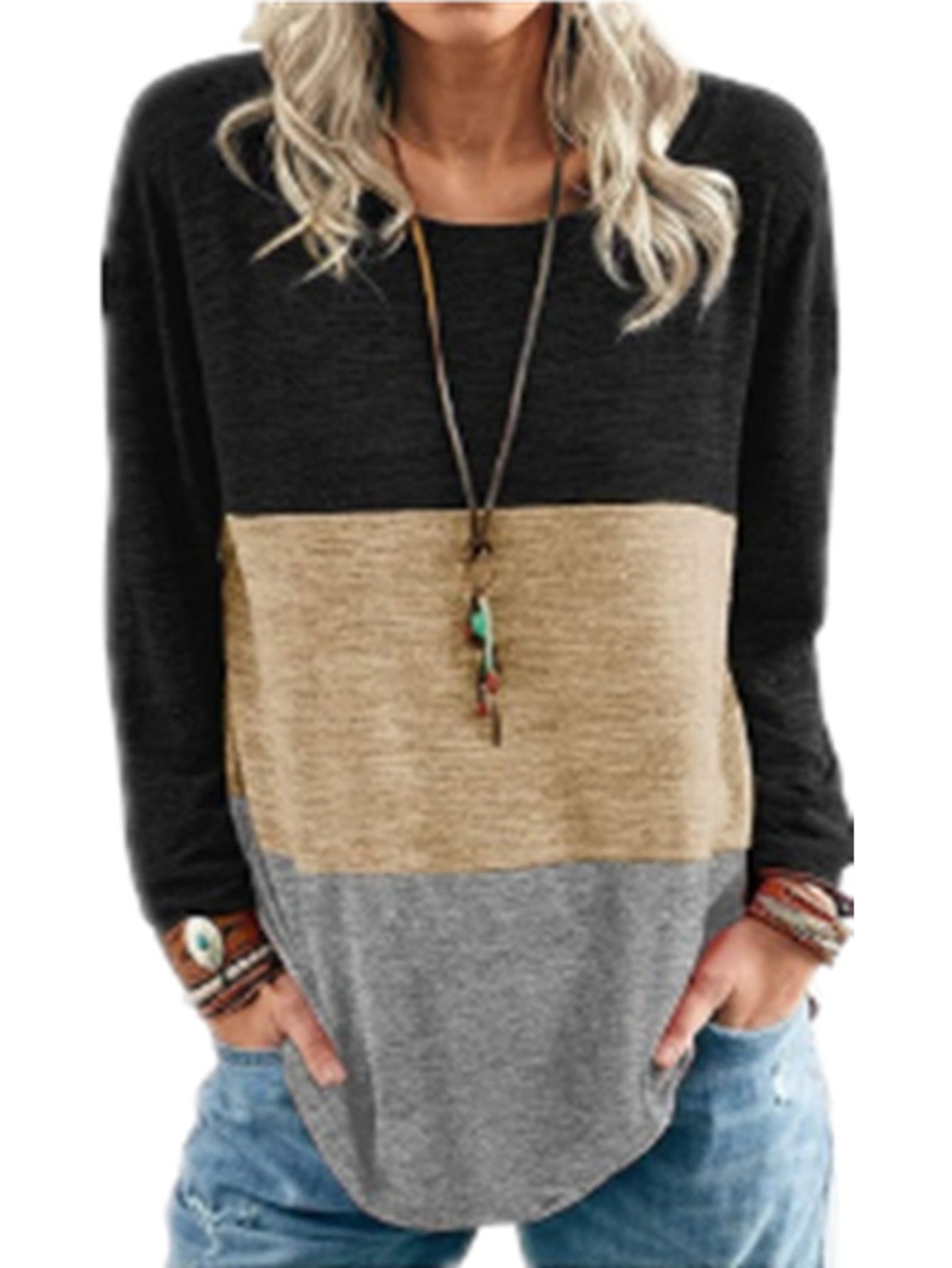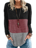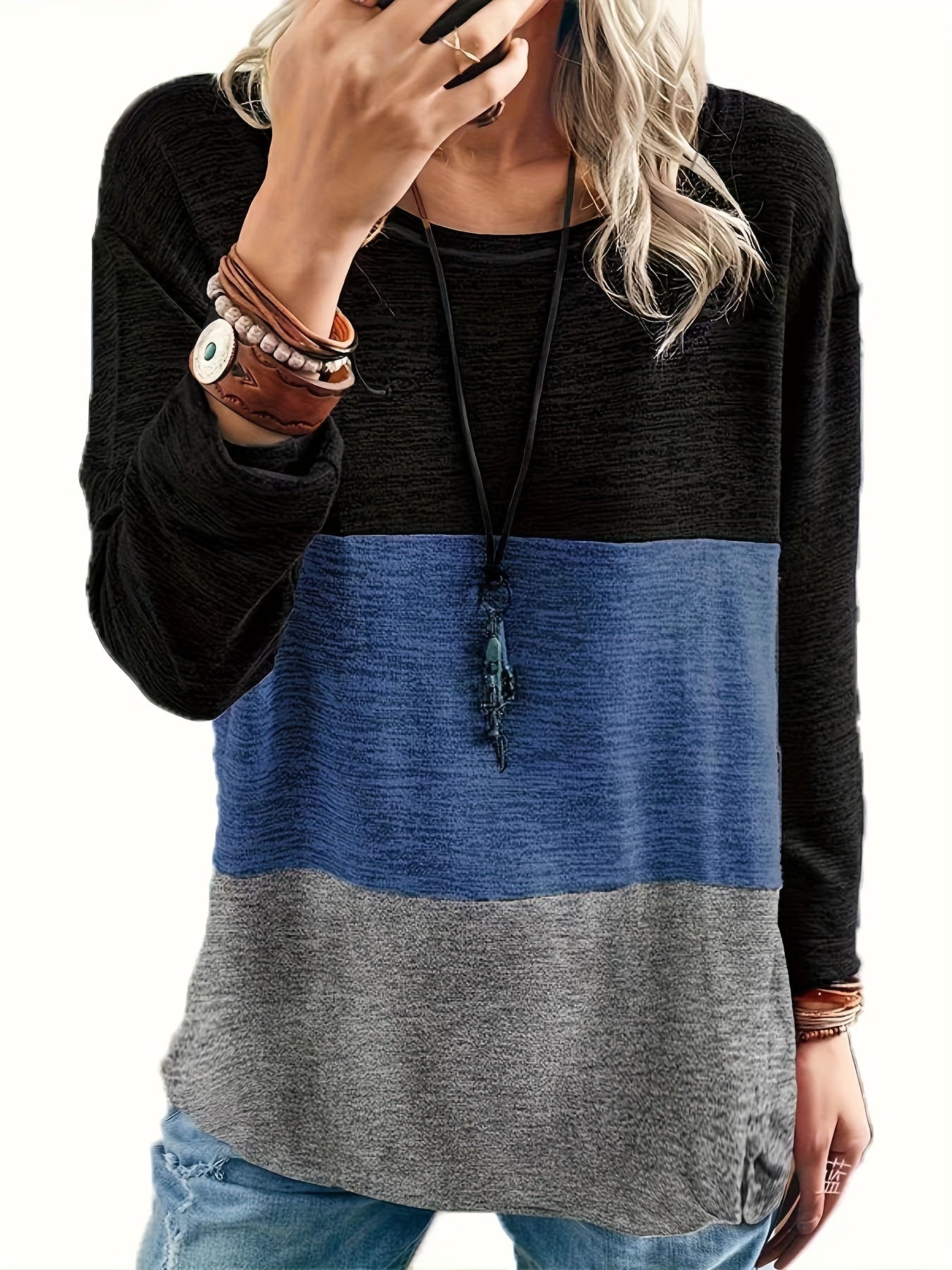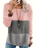 Sale Color Block Crew Neck T-shirt, Casual Long Sleeve Top