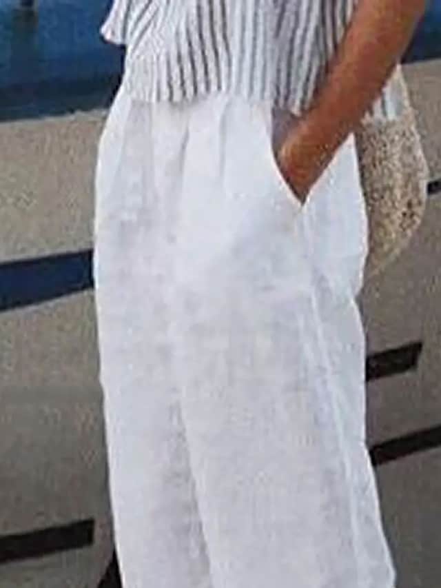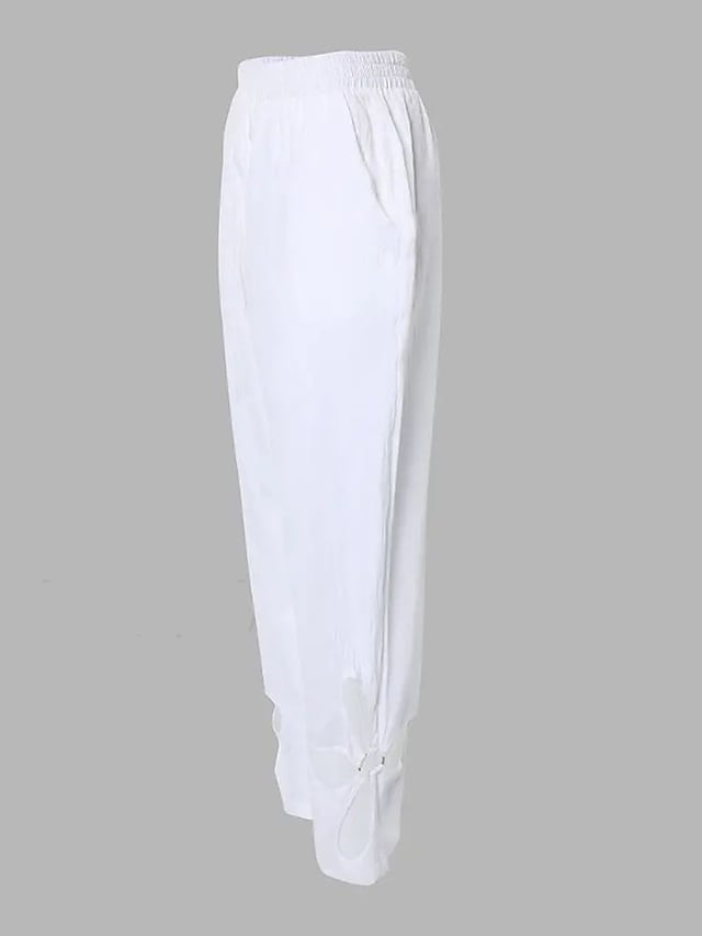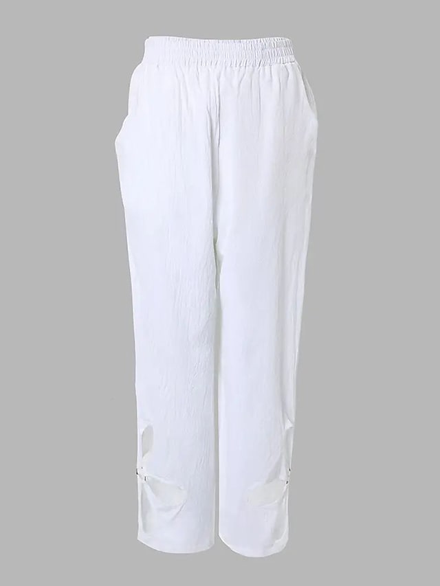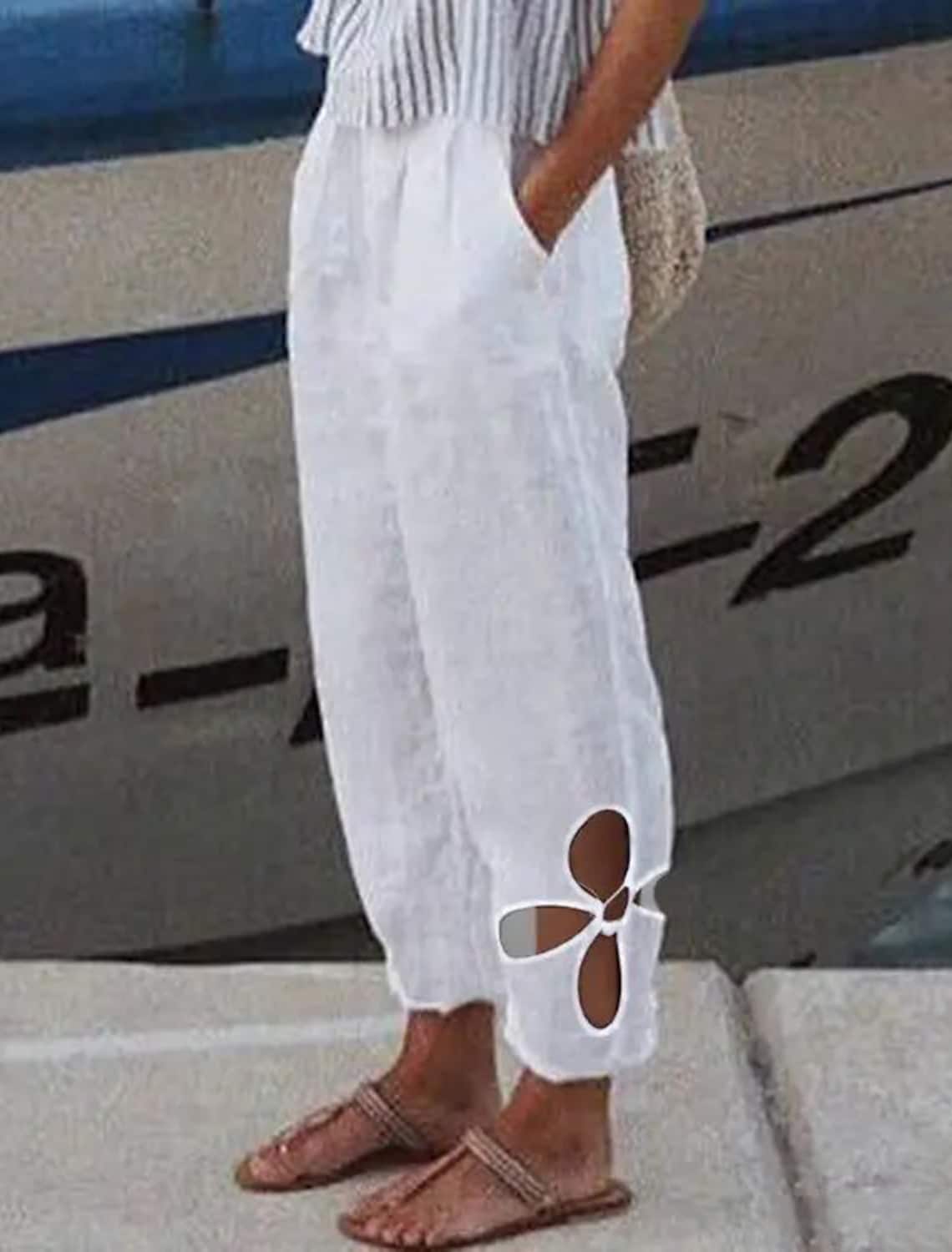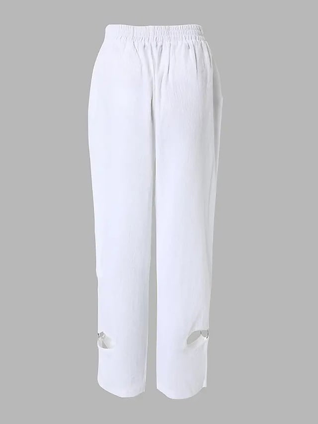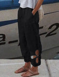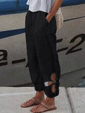 Women's Cotton And Linen Casual Daily Side Pockets Cut Out Full Length Comfort Pants