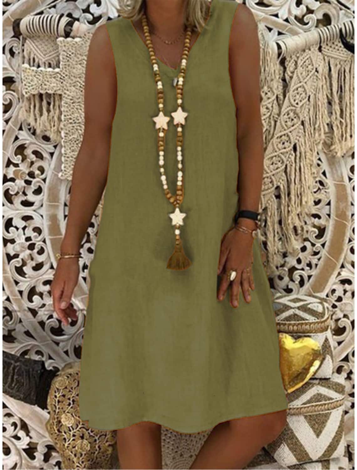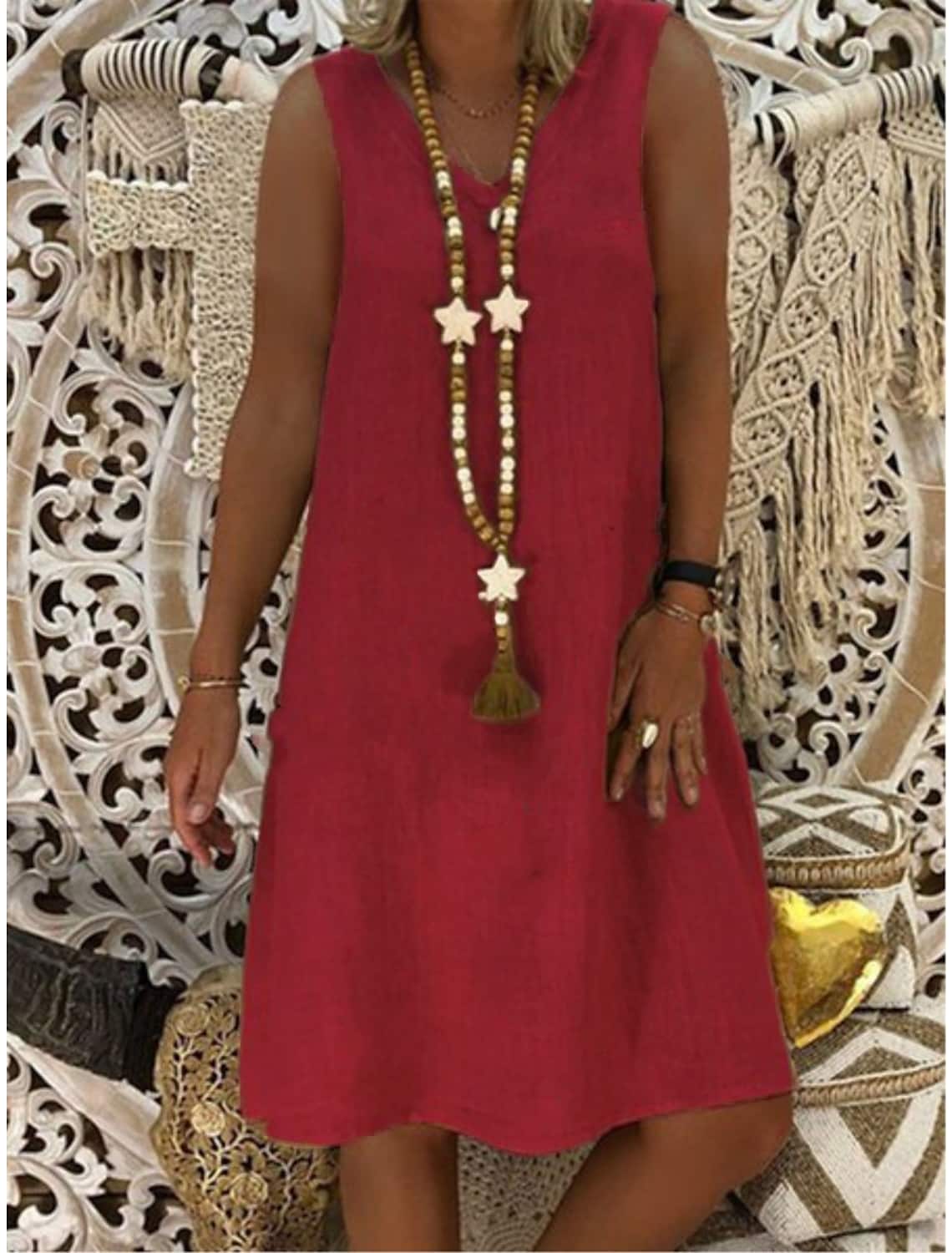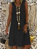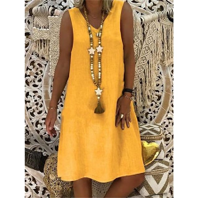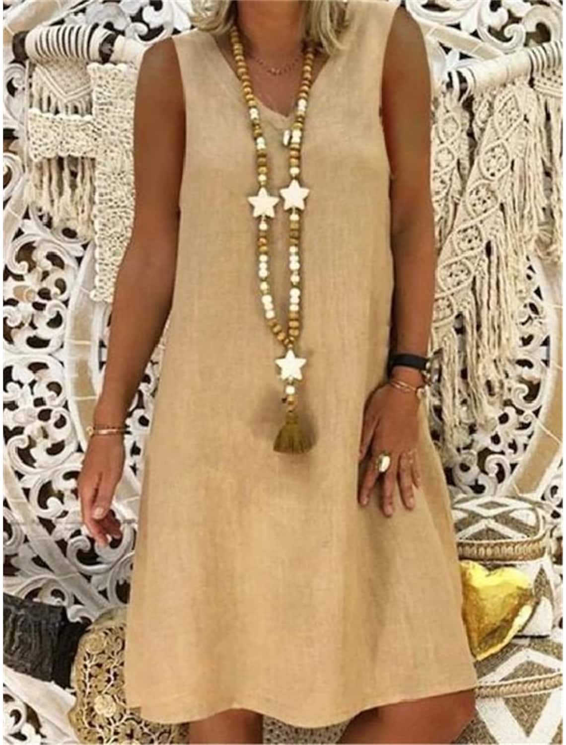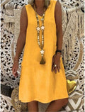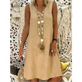 Women's Cotton Linen V Neck Sleeveless Dress