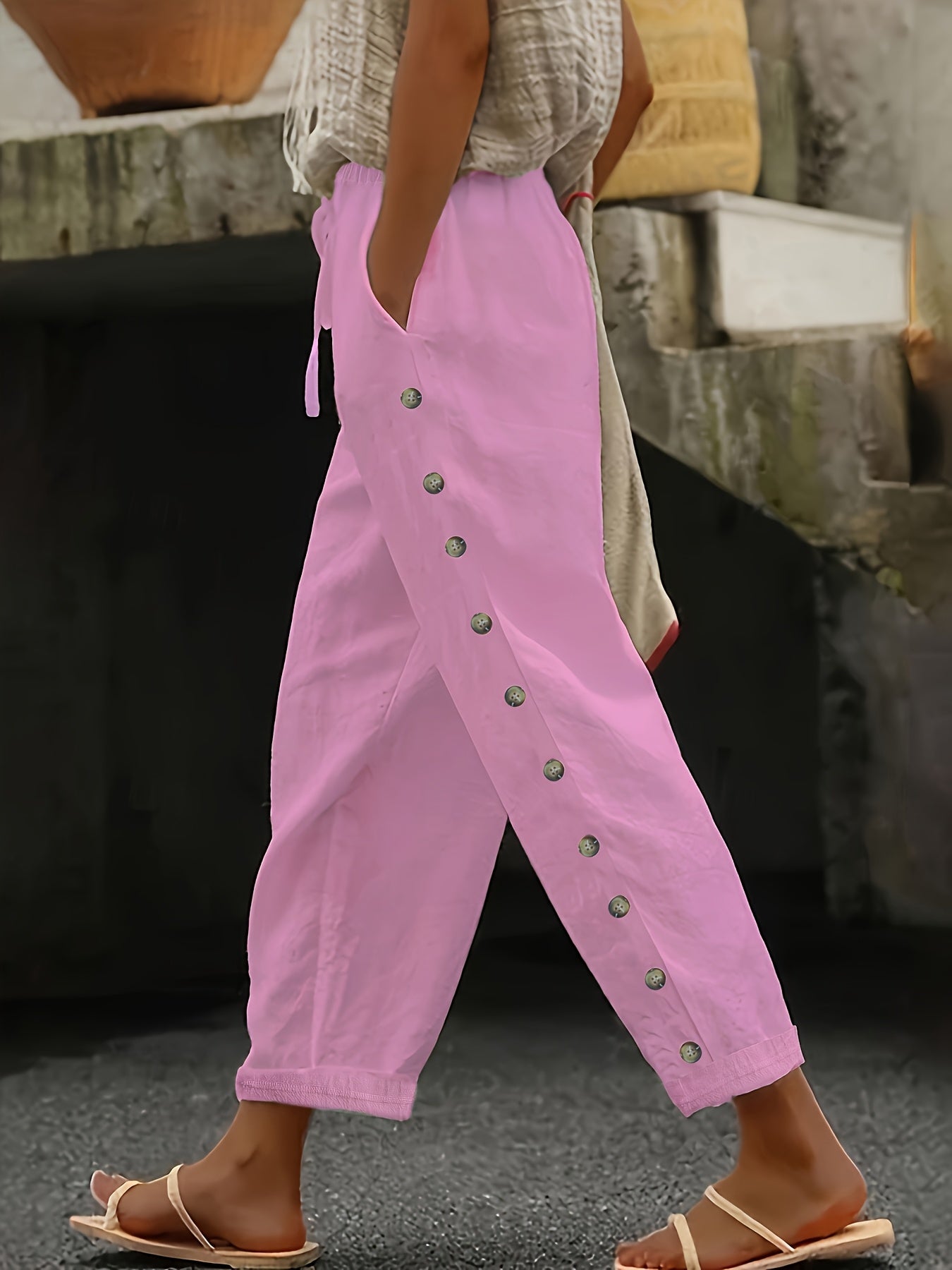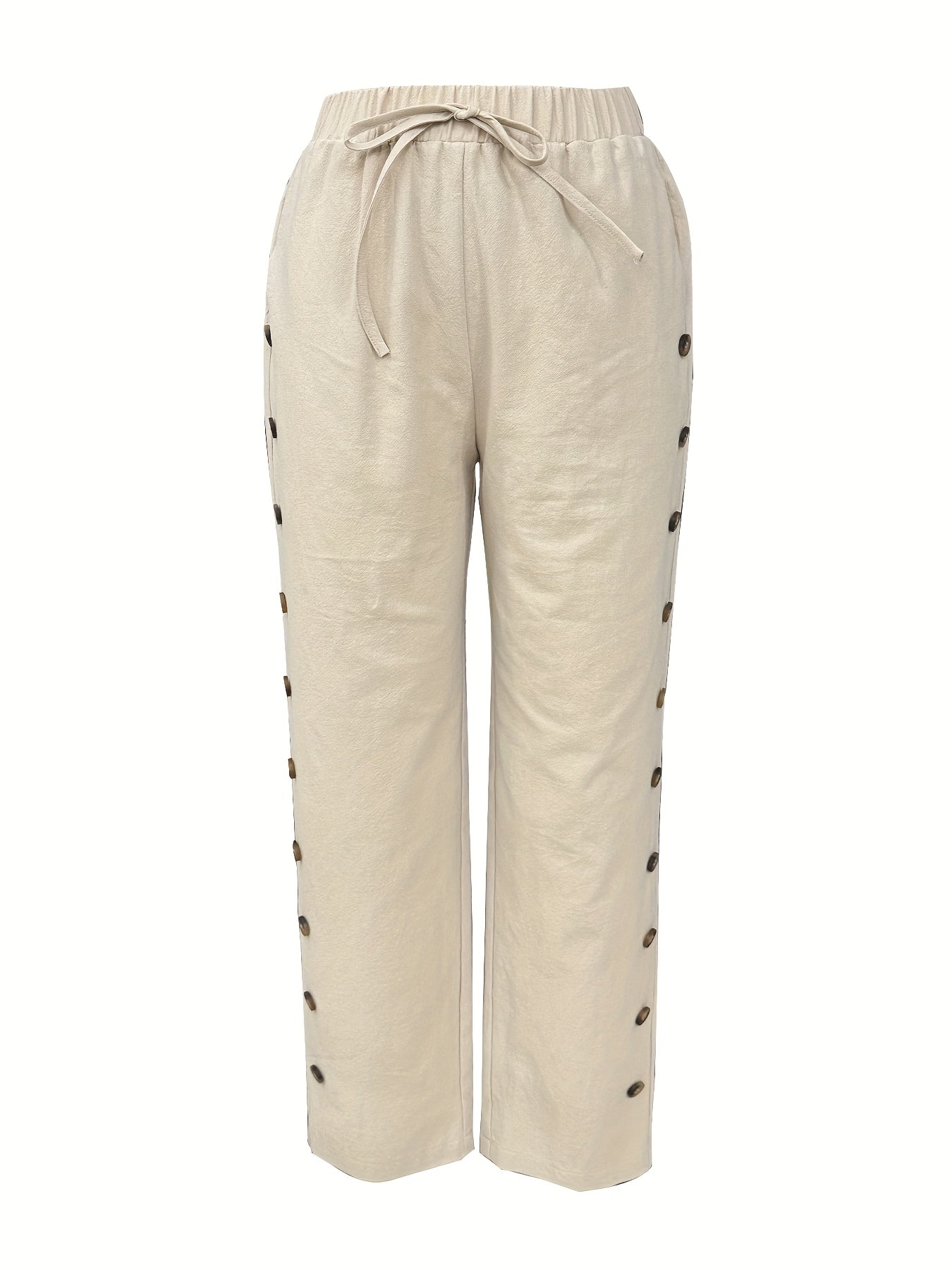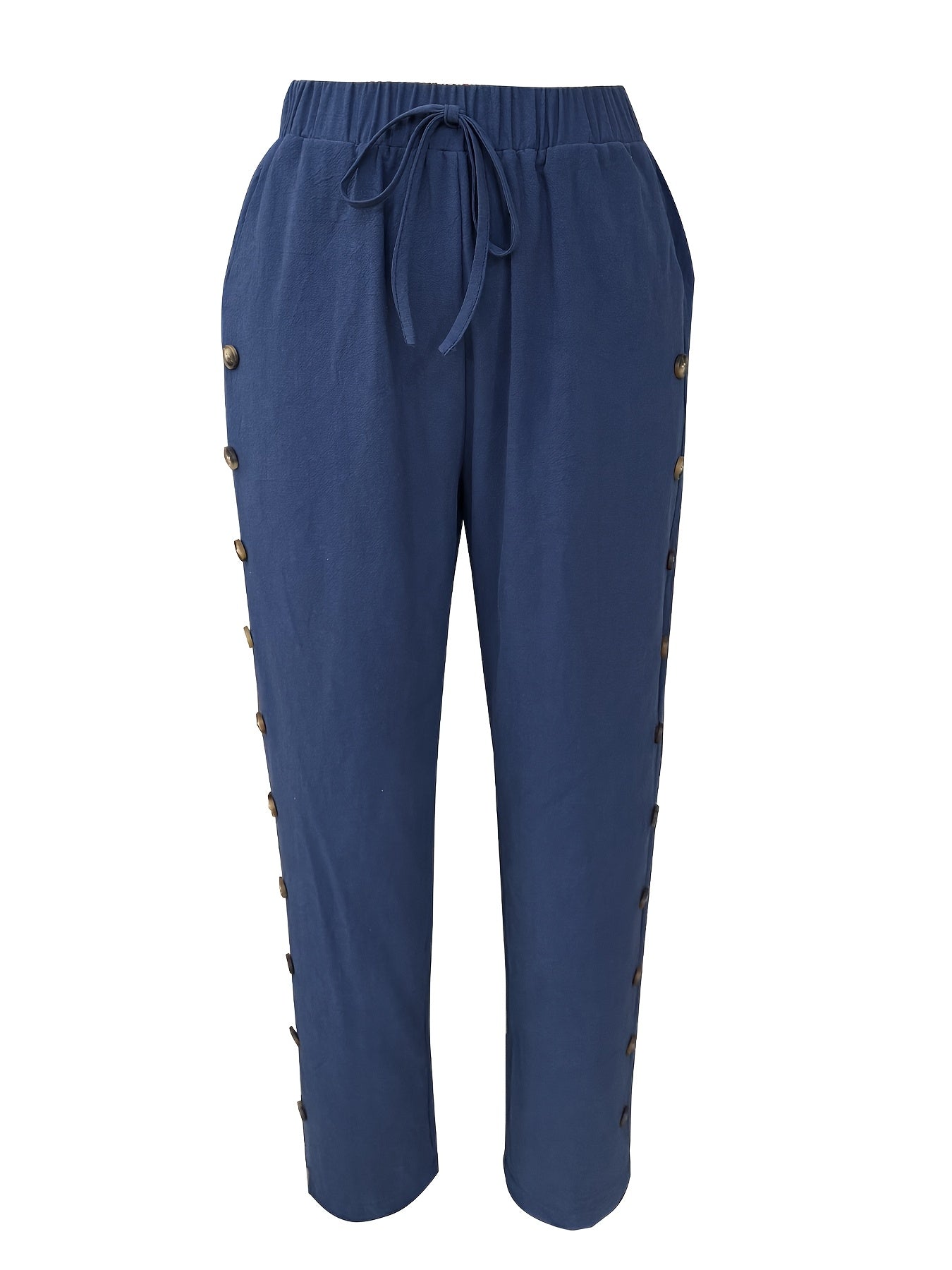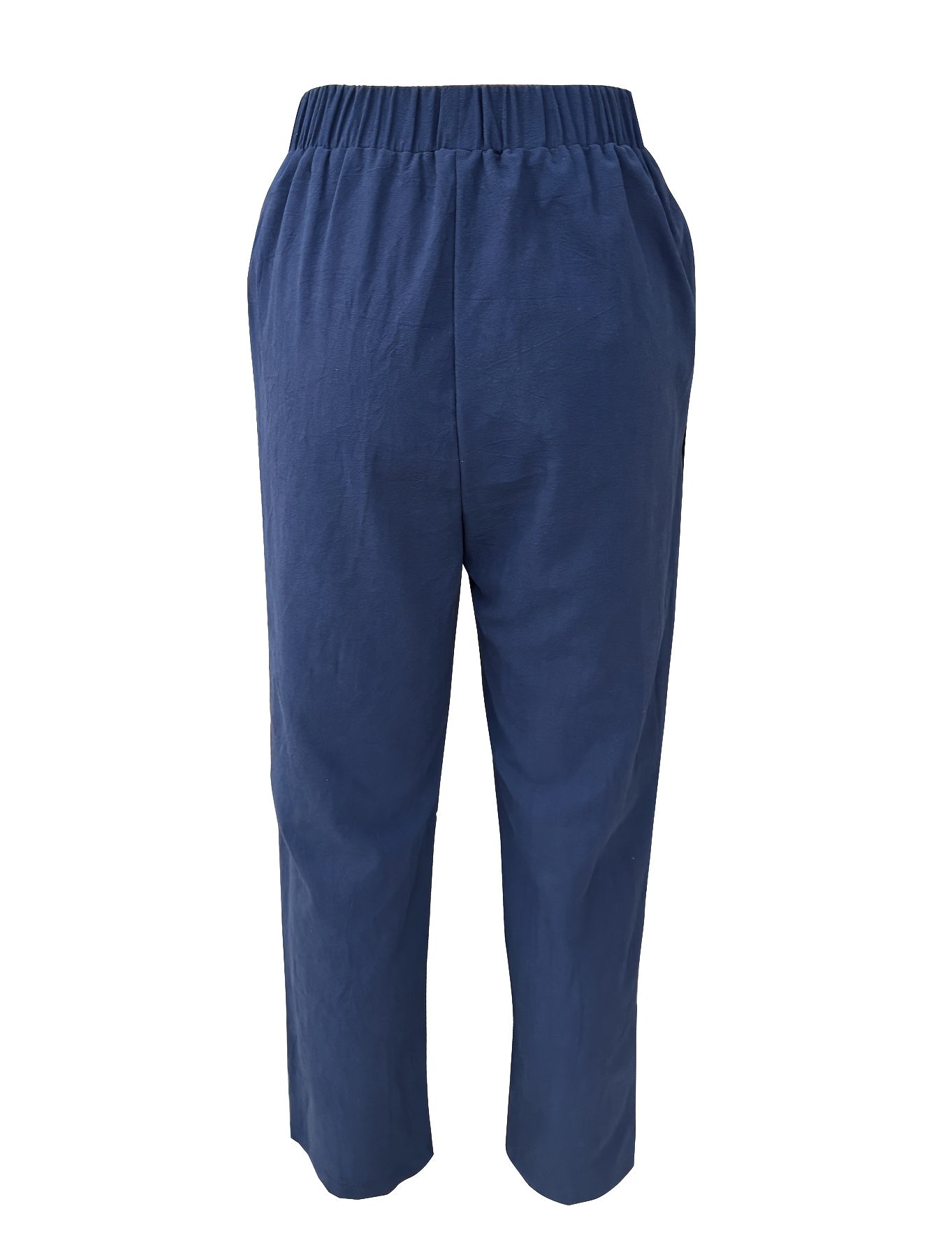 Women'S Elegant Casual Blue Straight-Leg Pants with Pearl Embellishments