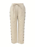 Sale Women's Loose Fit Wide-Leg Trousers - Casual Solid Color Drawstring Design Fashion Pants