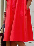 Sale Women's Elegant Casual Shirt Collar Pocket Rolled Cuff Long Sleeve Midi Dress