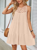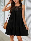 Sale Women's Fashion Sexy Sleeveless Round Neck Hollow Solid Color Style Short dress