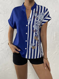 Women's Floral Print Contrast Blouse - Casual Cap Sleeve Collar Top for Effortless Style